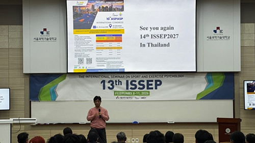 제13회 International Seminar on Sport and Exercise Psychology (ISSEP)가 2026년 2월 8일부터 11일까지 스포츠과학과 주관으로 서울과학기술대학교 무궁관(911호)에서 개최되었다.